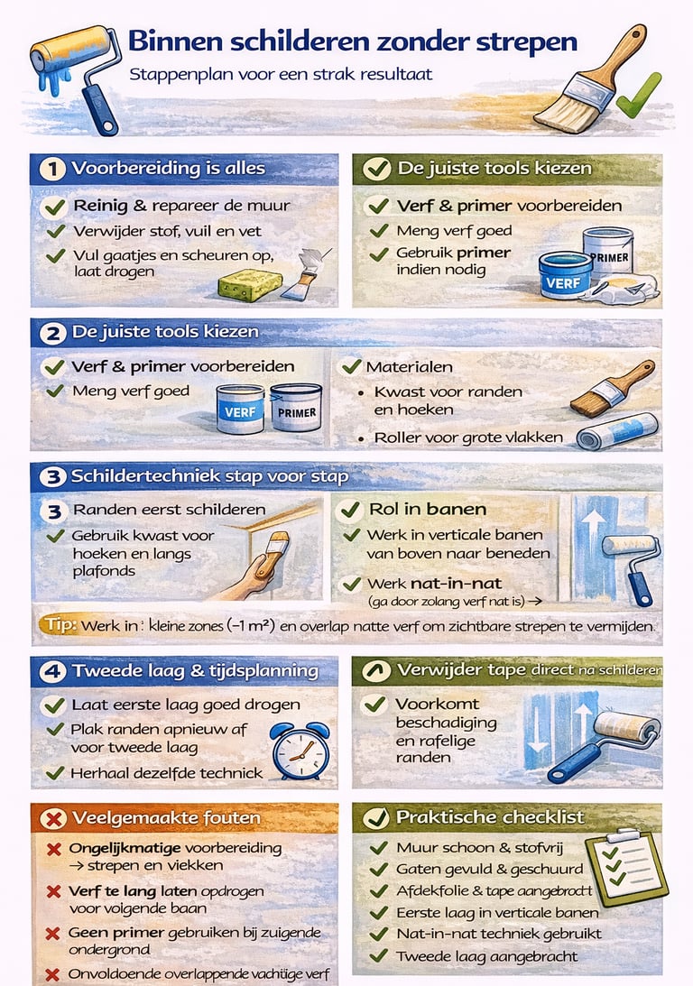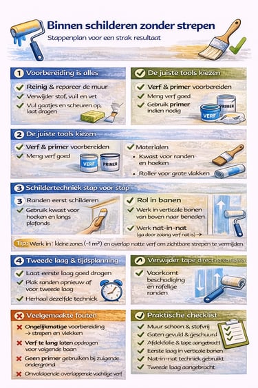 Binnen schilderen zonder strepen: stappenplan voor strak resultaat