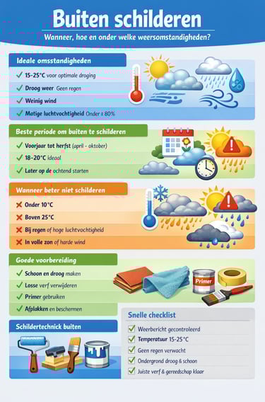 Buiten schilderen vraagt om planning en de juiste omstandigheden.