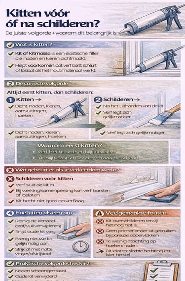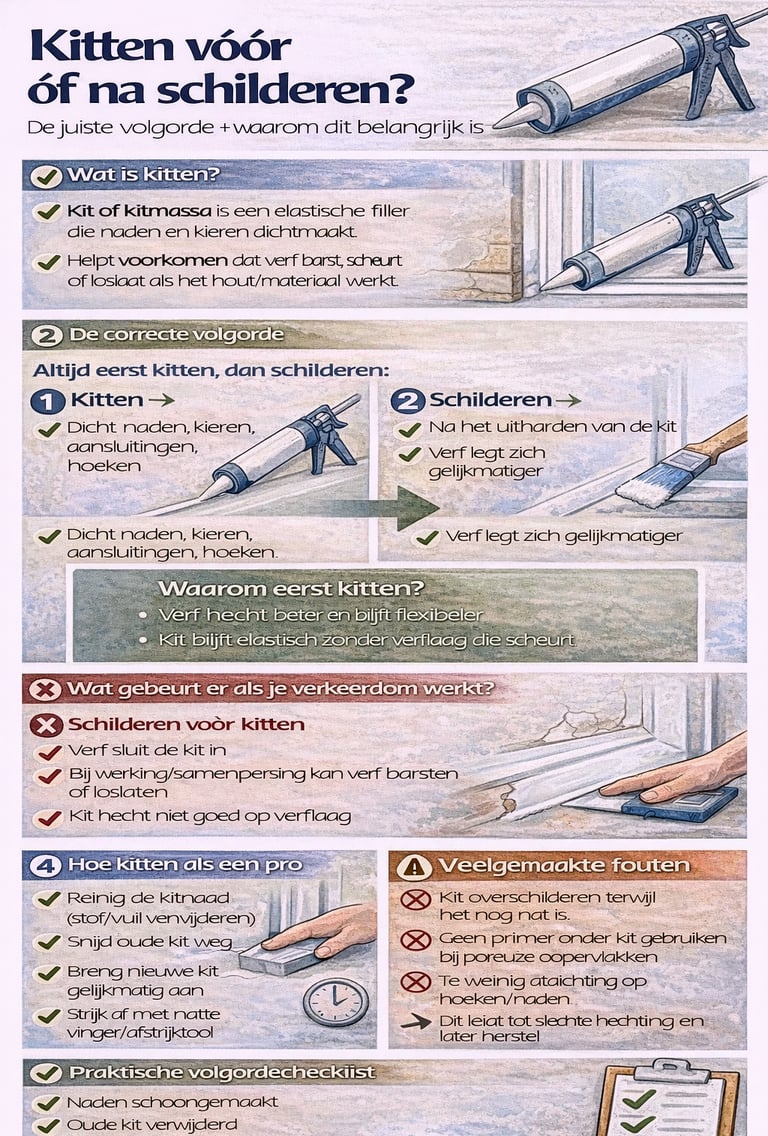 Een veelgestelde vraag bij schilderwerk is: moet je eerst kitten en dan schilderen, of juist andersom?