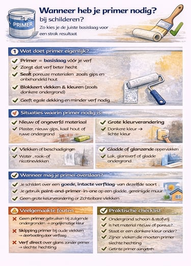 In dit artikel leg ik helder en eerlijk uit wanneer primer echt nodig is, wanneer je het kunt overslaan en wat er gebeurt als je de verkeerde keuze maakt.